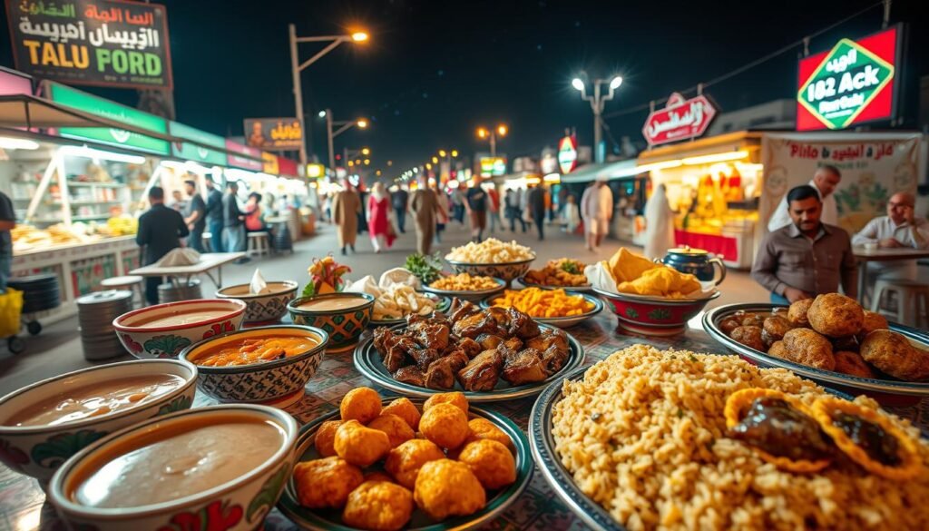 The Al-Balad night market in Jeddah is a top spot. It turns into a Cuisine lover’s paradise after sunset. The smell of sizzling meats and seaCuisine fills the air, along with savory and sweet treats. People gather to try different Cuisines, from traditional Kingdom Meals to international street Cuisine.